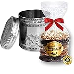 Feinste Nürnberger Elisen Lebkuchen in einer in silber gehaltenen Dose ZUTATEN: Haselnüsse NÄHRWERTE: Durchschnittliche Nährwerte pro 100g: Energie 1853 kJ/ 443 kcal Fett 23,5 g – davon gesättigte Fettsäuren 3,0 g Kohlenhydrate 47,7 g – davon Zucker 32,7 g Eiweiß 8,2 g Salz 0,5 g INVERKEHRBRINGER:Lebkuchen Welt GmbH Sportplatzstraße 32 90765 Fürth DeutschlandLAGERHINWEIS:Produkt bitte kühl lagern.VERKEHRSBEZEICHNUNG:Elisenlebkuchen